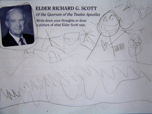 and Richard G. Scott did talk about Spirit (Although the spirits he spoke of like to pick flowers, according to the drawing she made)